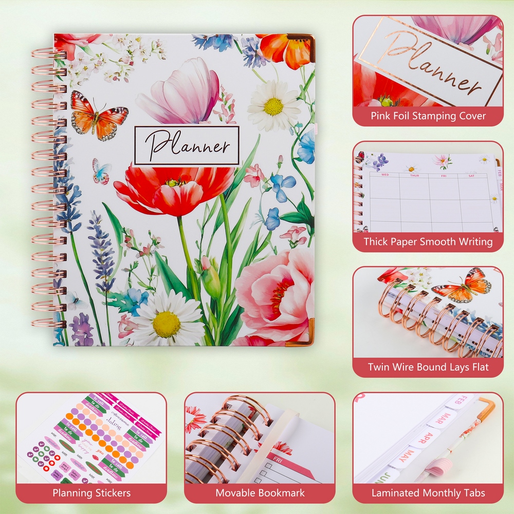 The bronzing process and flower design add a fashionable touch, while the flexible cover and strong twin-wire binding ensure durability.